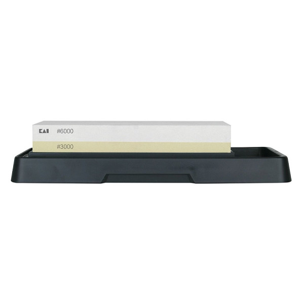 La pietra combinata offre una grana grossa da un lato per sgrossare e una grana fine dall’altro per l’affilatura finale. Queste pietre adottano una posizione inclinata grazie a un pratico sistema di fissaggio. Prima di usare la pietra immergetela nell'acqua per 10-15 minuti, fino a che non vedete più uscirne bolle d'aria. Durante l'affilatura mantenete sempre la pietra bagnata versandovi qualche goccia d'acqua, non rimuovete i residui di polvere che vi si depositano. Le pietre poggiano ai bordi del pratico sostegno in plastica, permettendo cosí ad entrambi i lati d'asciugarsi rapidamente. Il supporto in plastica è inoltre provvisto di un piccolo canale di scolo e di una vaschetta di raccolta dell'acqua, con la quale inumidire ripetutamente la pietra durante l'affilatura. I piedi antiscivolo garantiscono un appoggio sicuro. Il gruppo KAI , con sede a Tokio, vanta una tradizione di 100 anni. Sviluppa prodotti di coltelleria con eccellenti funzionalità di taglio e ..